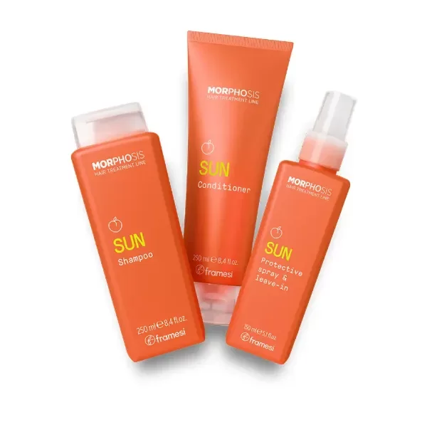 Los productos Morphosis Sun están enriquecidos con extracto orgánico de durazno que protege e hidrata, un fitocomplejo que defiende el cabello del daño solar, de la sal y del cloro, y hasta un 97% de ingredientes naturales. - 100% Vegano - 0% Gluten - 0% SLES & SLS - 0% Parabenos - 0% Colorantes artificiales La fragancia 100% biodegradable de Morphosis Sun te llevará a un estado de relajación. Una magia creada por la tecnología MoodsentzTM, fragancias que evocan y generan sentimientos positivos, certificadas por el método Mood Portrait, un enfoque no verbal que mide los beneficios emocionales de los aromas.